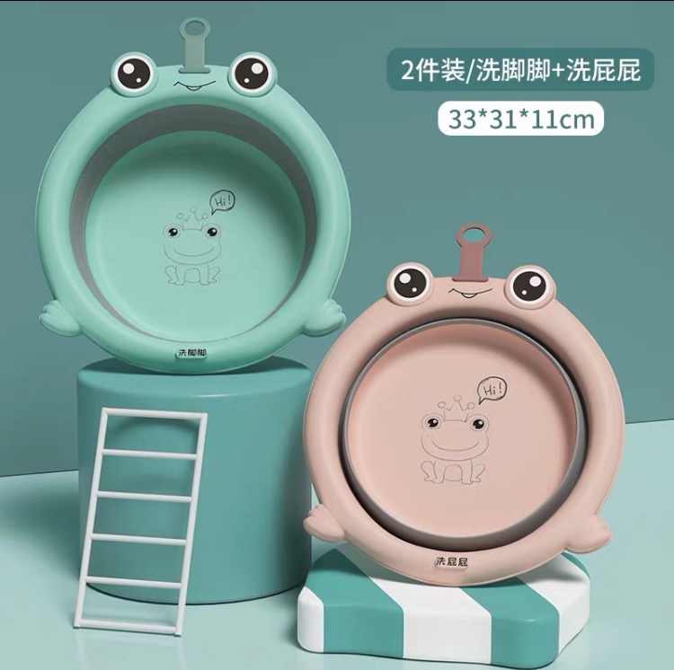 Children's foldable cartoon washbasin newborn baby wash face wash fart basin home three-piece set baby small basin