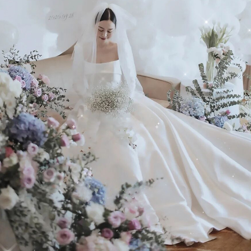 Satin French long-sleeved light wedding dress 2022 new bridal main gauze dress female high-end texture large trailing out yarn