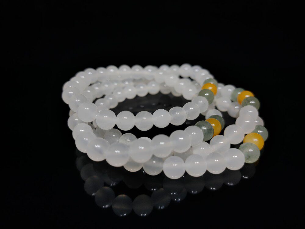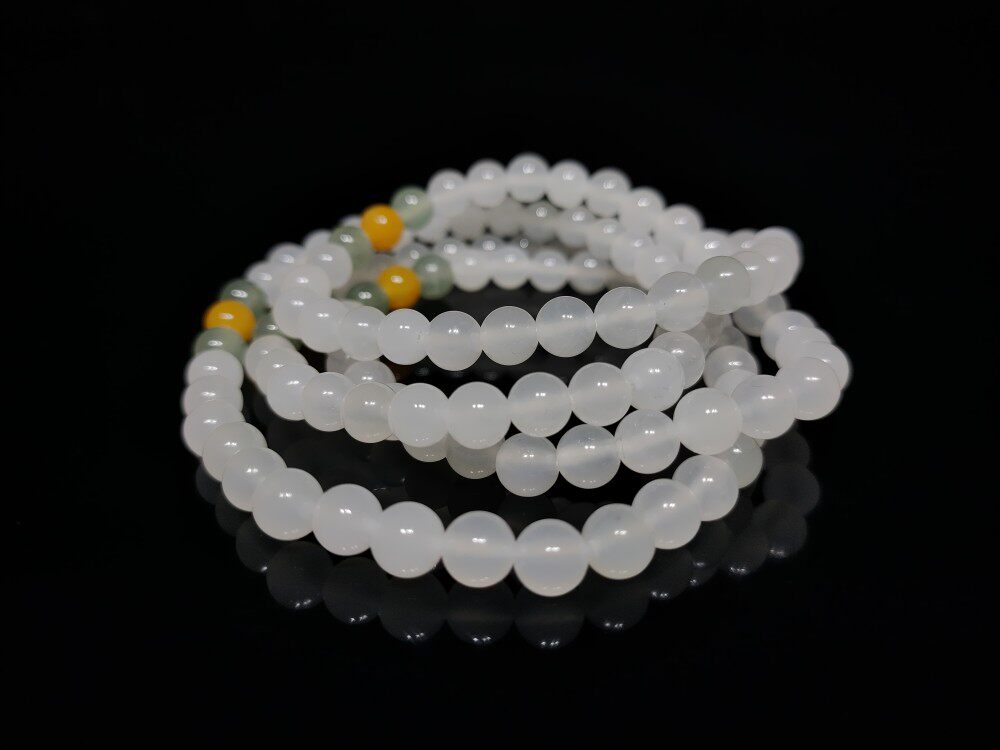 Chicken blood stone Guilin chicken blood jade Shanglang ice female hand-carved white jade ornament 108 beads Buddha bead bracelet