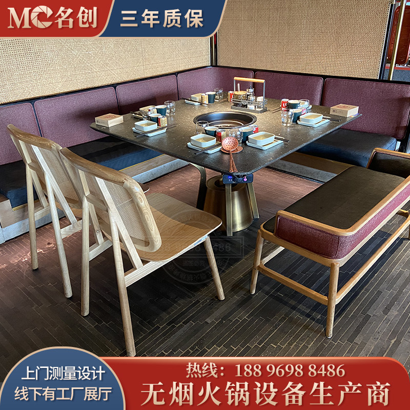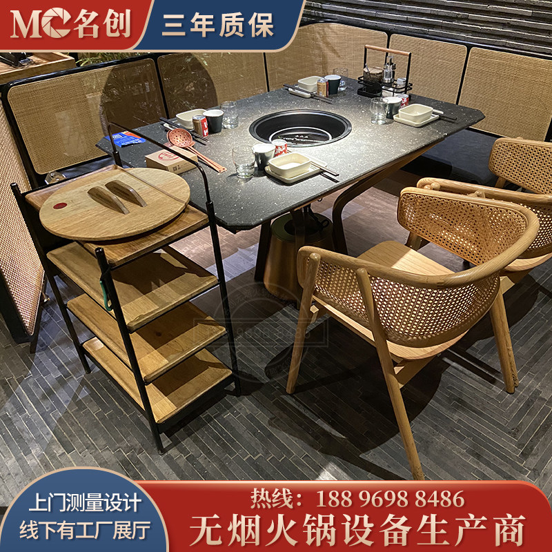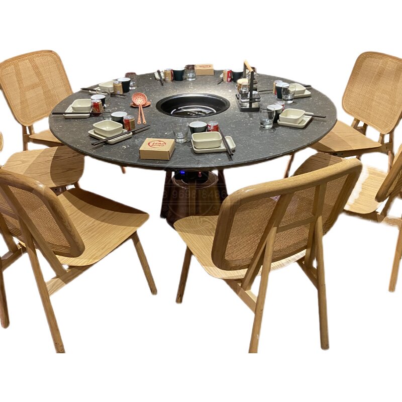 Manufacturer direct sales new light lavish solid wood marble induction cooker smoke-free purifier without pipe hot pot table and chairs-Taobao