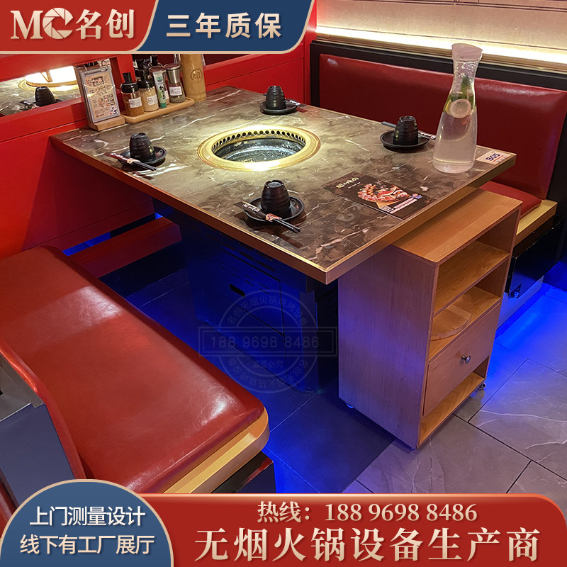 Marble Day-style self-service baking-cleaning integrated smoke-free hot pot barbecue table restaurant Lower smoke and barbecue table chair combination-Taobao