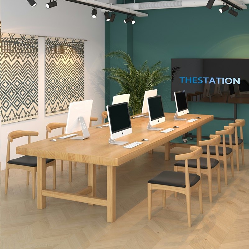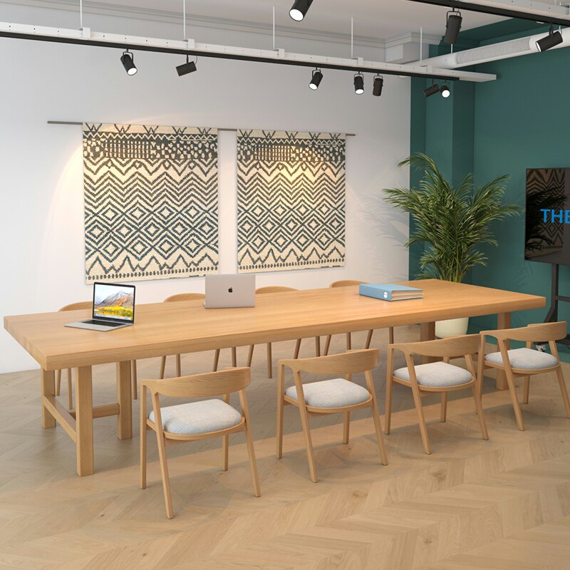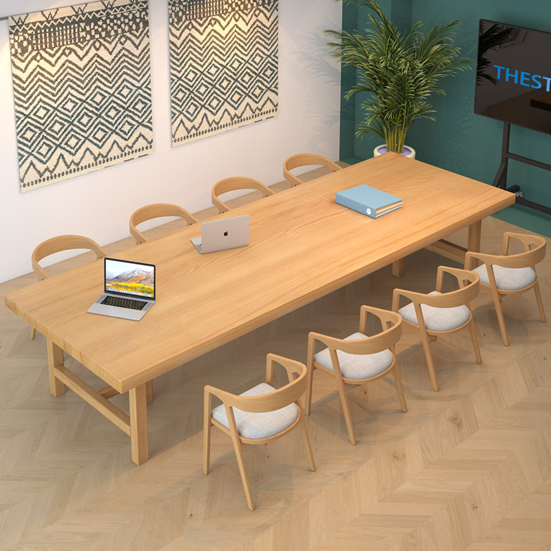 Brief Modern Full Wood Meeting Table And Chairs Composition Library Strip Large Table Office Long Table Bench Log-Taobao