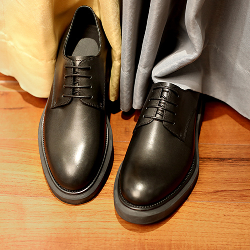 Touch Miss2021 new leather shoes business formal leather breathable casual shoes men's lace-up low-heeled derby shoes