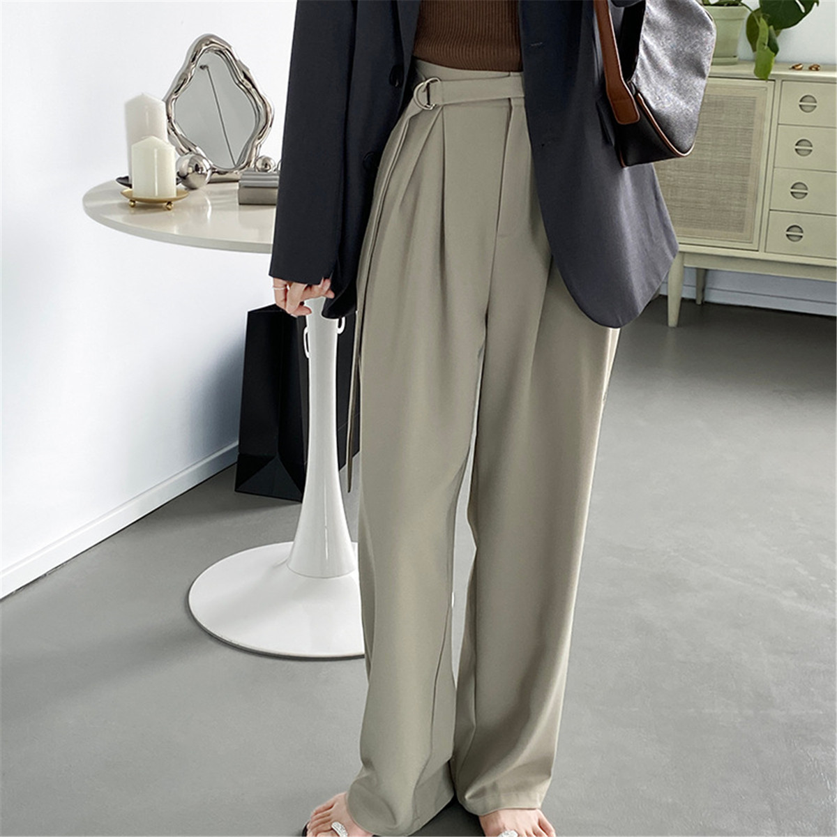 Pituitary Western Pants Woman 2022 new fall High waist display slim drag pants wide leg casual pants Korean version loose trousers