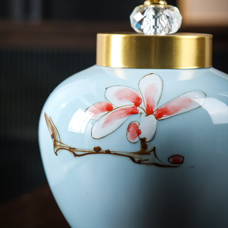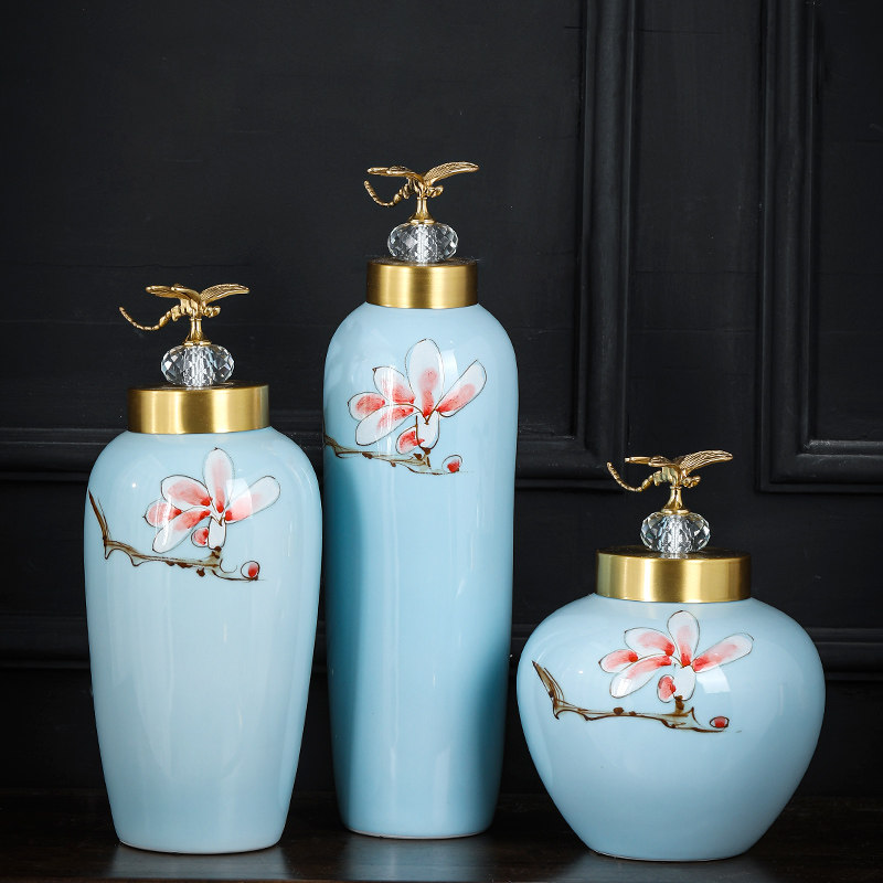 New Chinese-style ornaments storage tank Jingdezhen high temperature hand-painted ceramic study living room club TV cabinet decoration