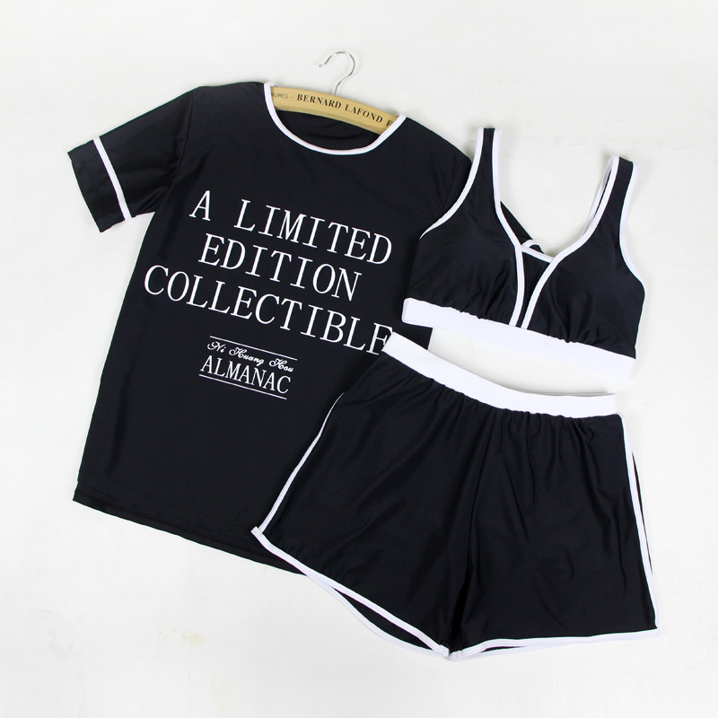Swimsuit women's two-piece three-piece large size cover the belly to show thin fat MM sports and leisure 200 catties short-sleeved 2021 new