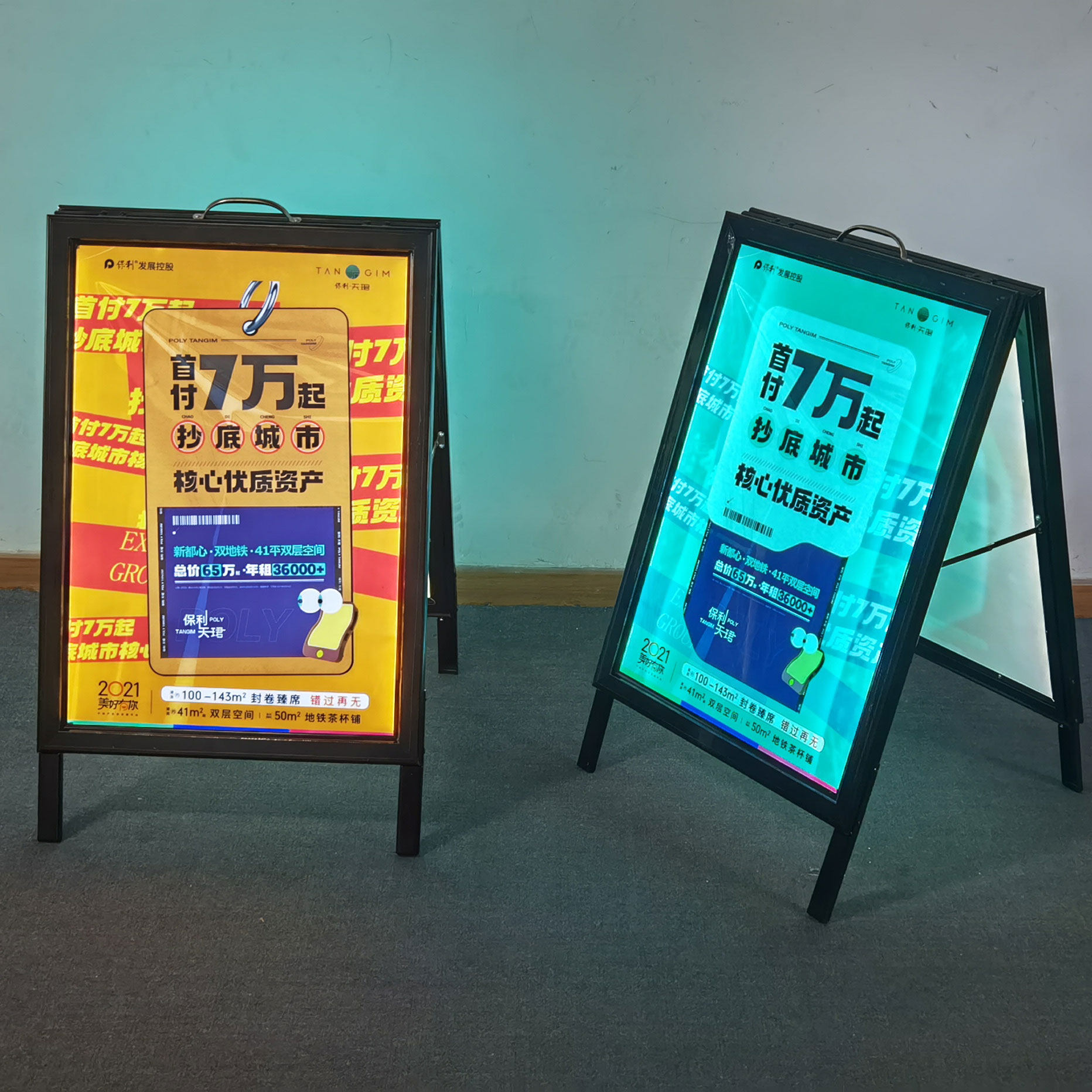 Type A light emitting billboard portable folding poster stand light box display board charging vertical double-sided floor standing