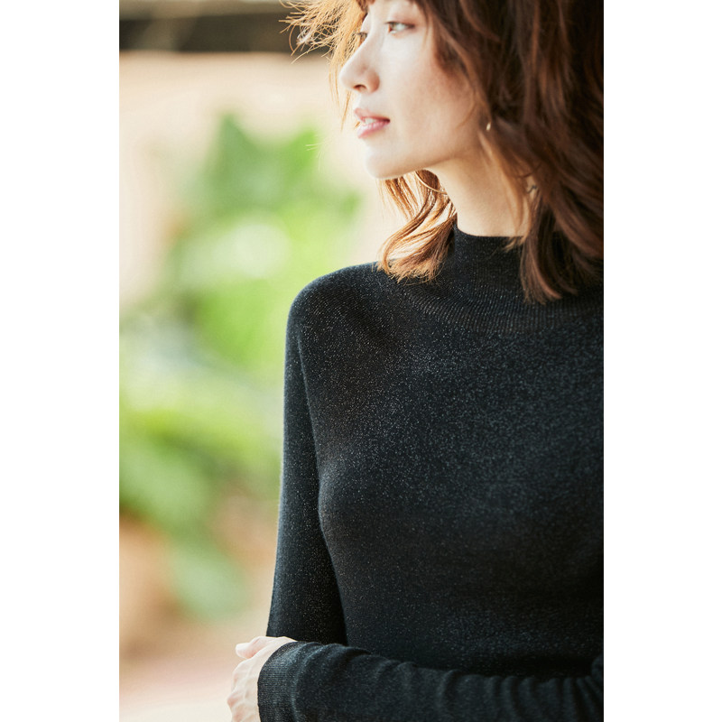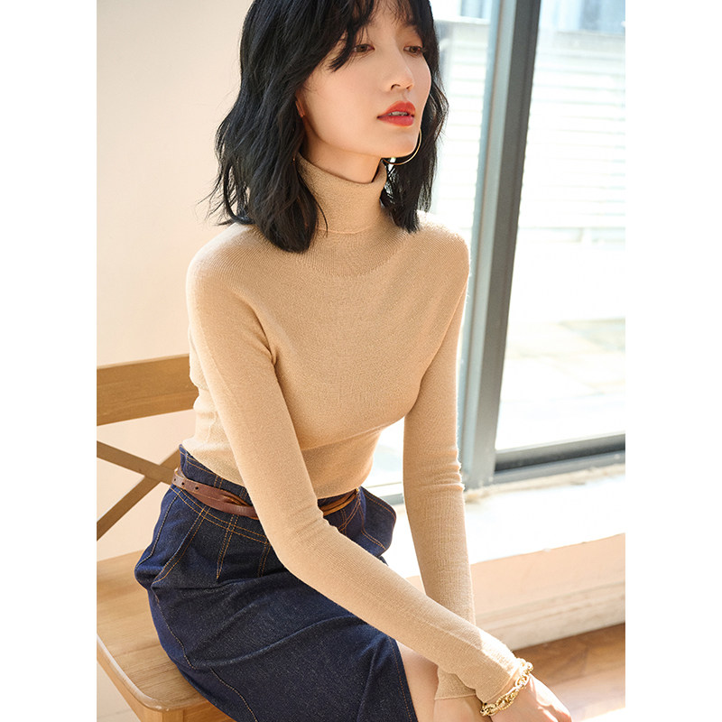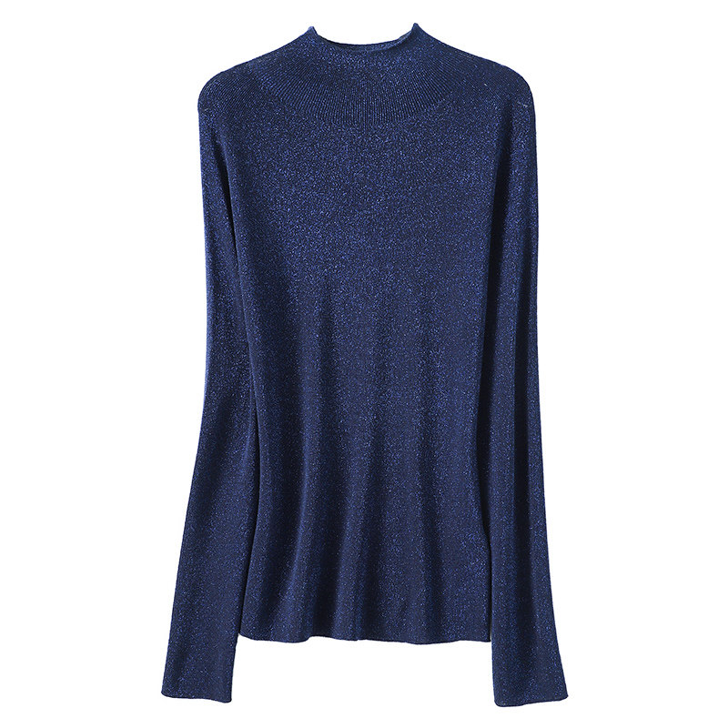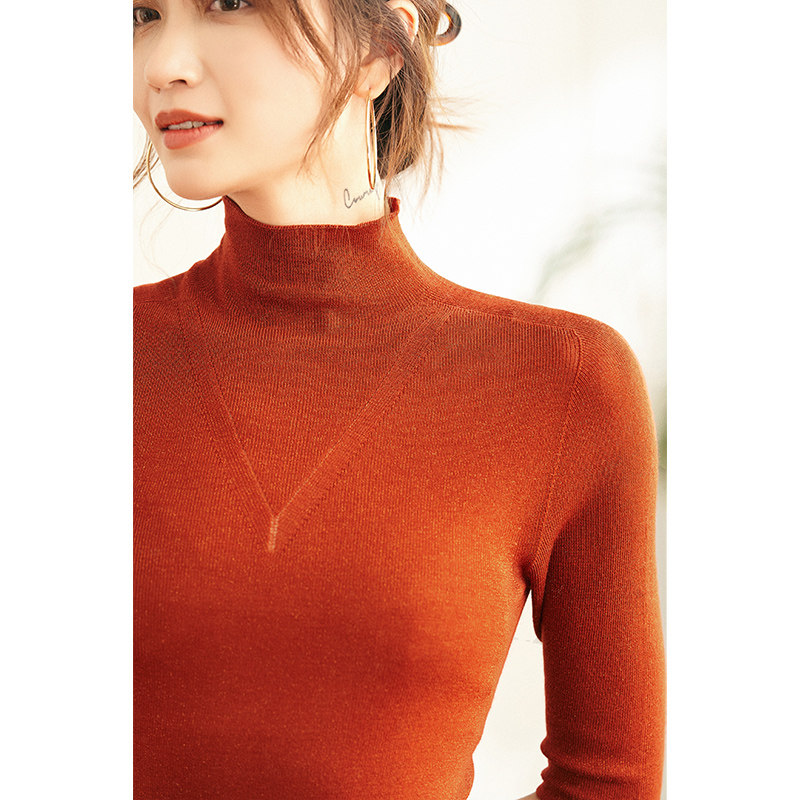 T home thin seamless full-formed cardigan bright silk sweater top half turtleneck bottoming sweater sweater women's autumn and winter