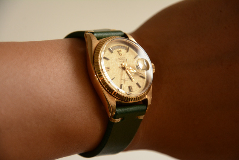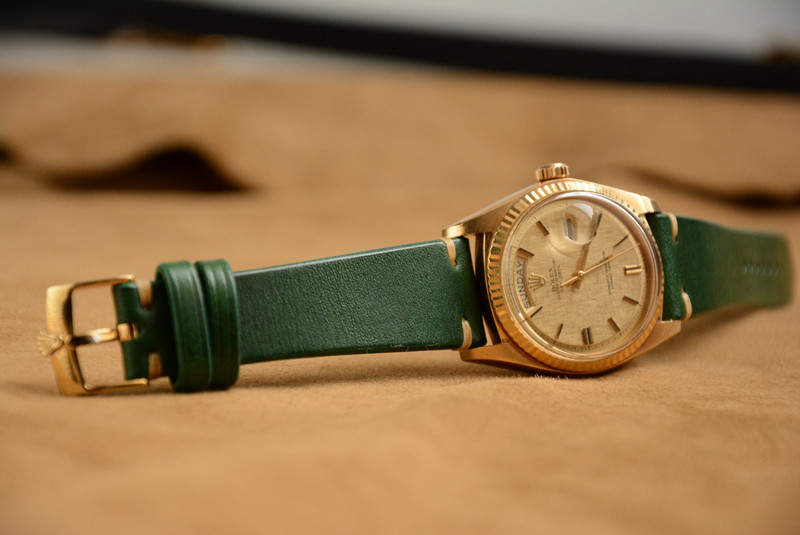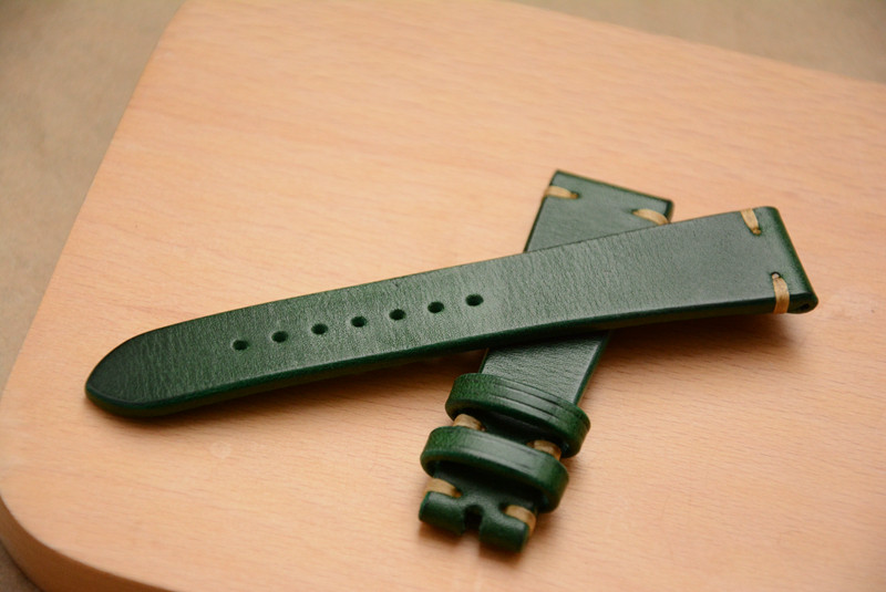 Right-made custom ink-green single layer retro-coated cow leather strap is true for the Retro Table DD Water GS Fifty Search