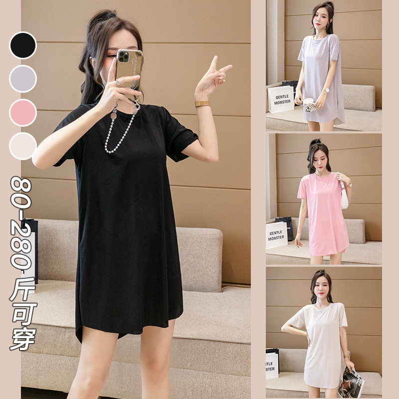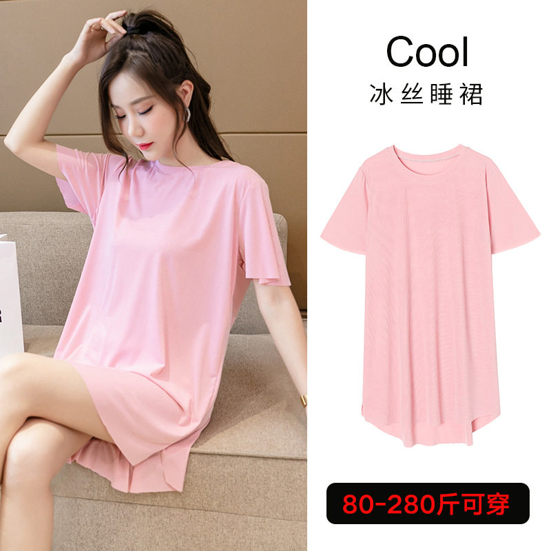 Nightdress female Xia Bingsi short-sleeved loose large size fat mm200 catties slim shoulders t-shirt fat sister pajamas thin section