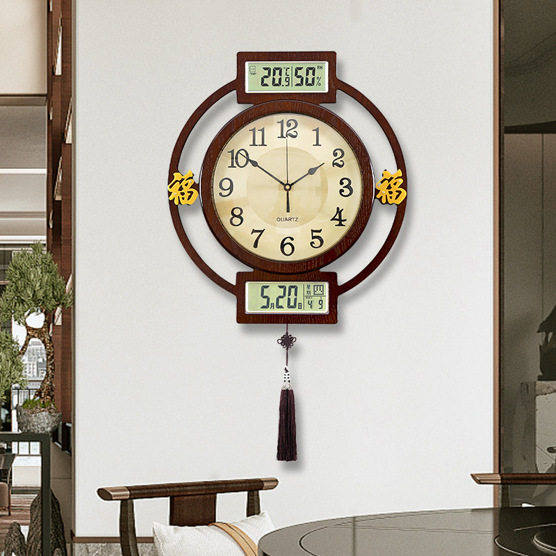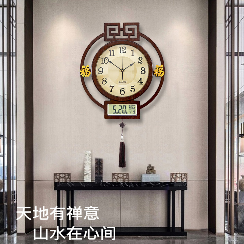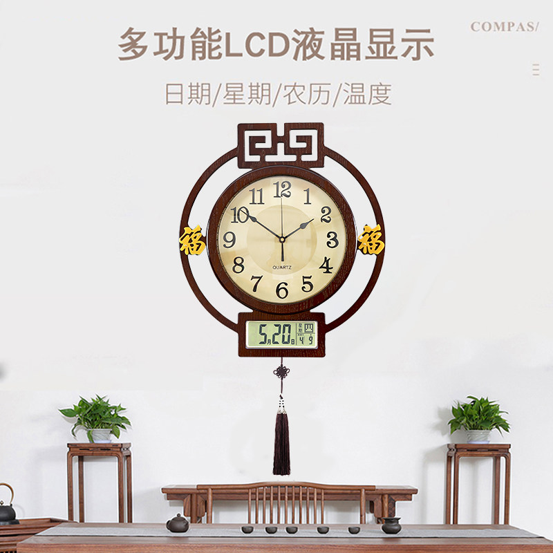 New Chinese hanging clock Home Genguan Living Room China Wind Clock Round Wooden Fashion Dining Hall Hung Wall Airwaves Watch