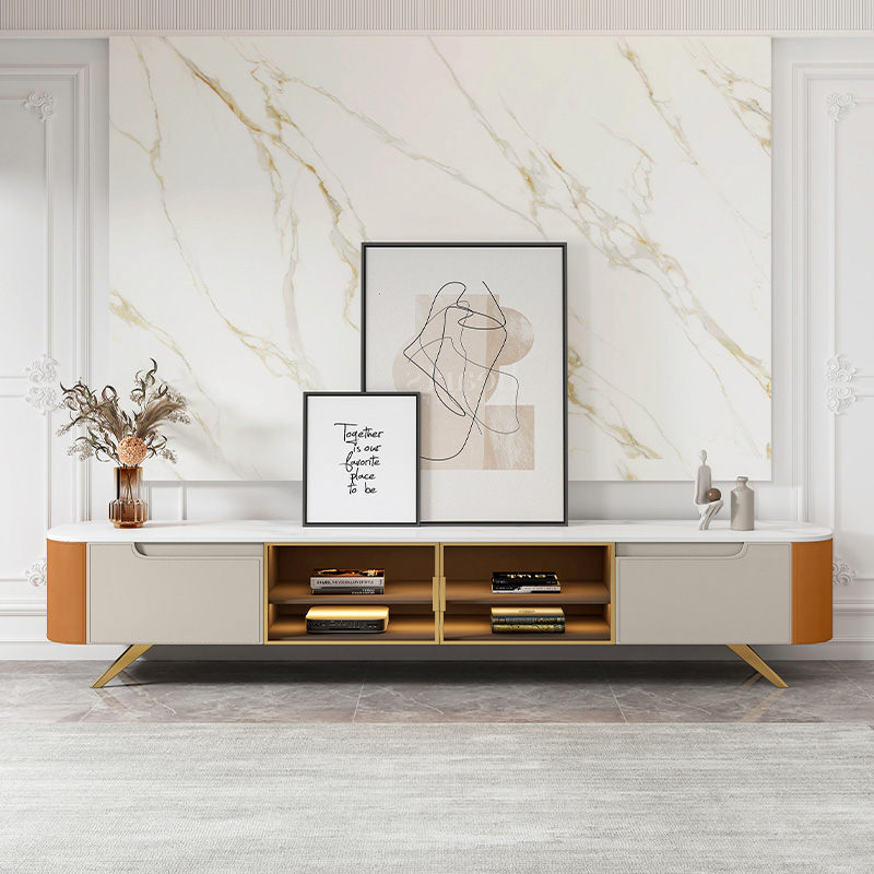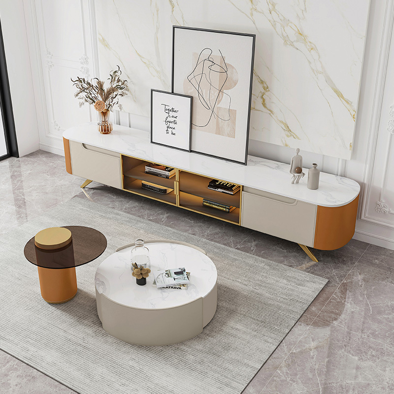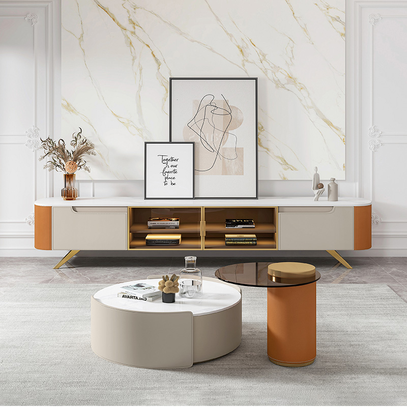 Rock board TV cabinet 2021 new saddle leather luxury modern simple Nordic living room tea table assembly