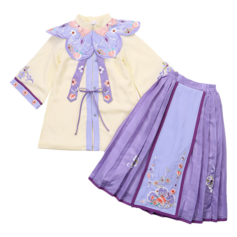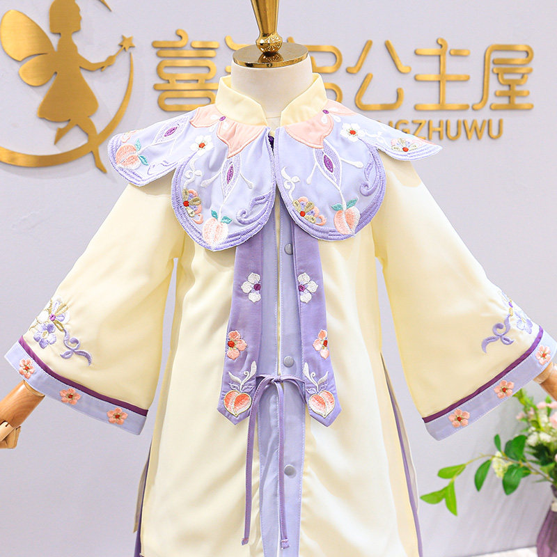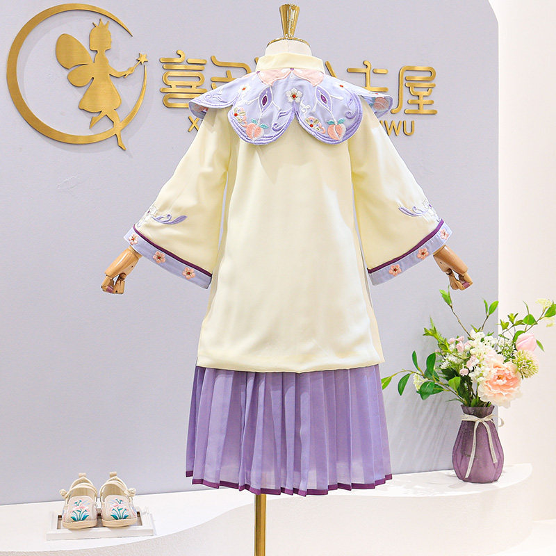 Girl Hanfu Suit Spring Autumn Clothing New Snow Spinning Ocean Dress Embroidery Children's Ancient Dress Jacket Two Sets Spring Autumn