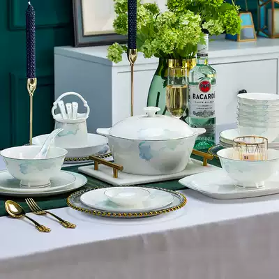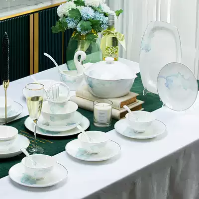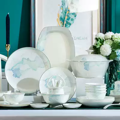 Kangpushi tableware light luxury Jingdezhen bone china dishes high-end combination Nordic style simple dishes set household
