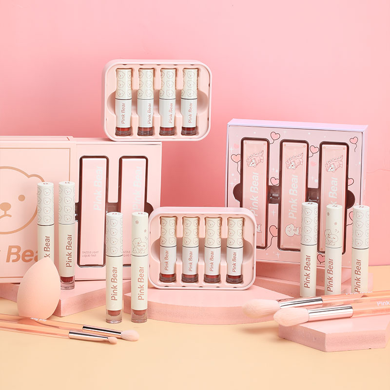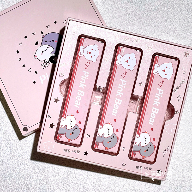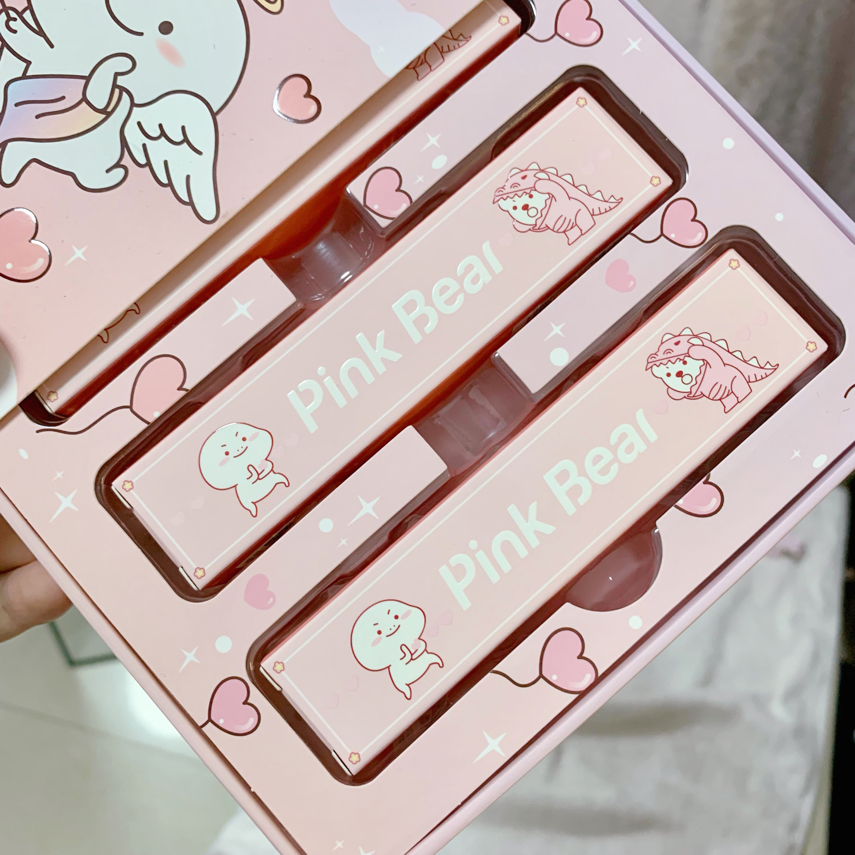 PINKBEAR leather bear well behayly baby joint Ryuko mirror lip glazed opening red gift box 3 Seven New Year's Eve Peach Cat