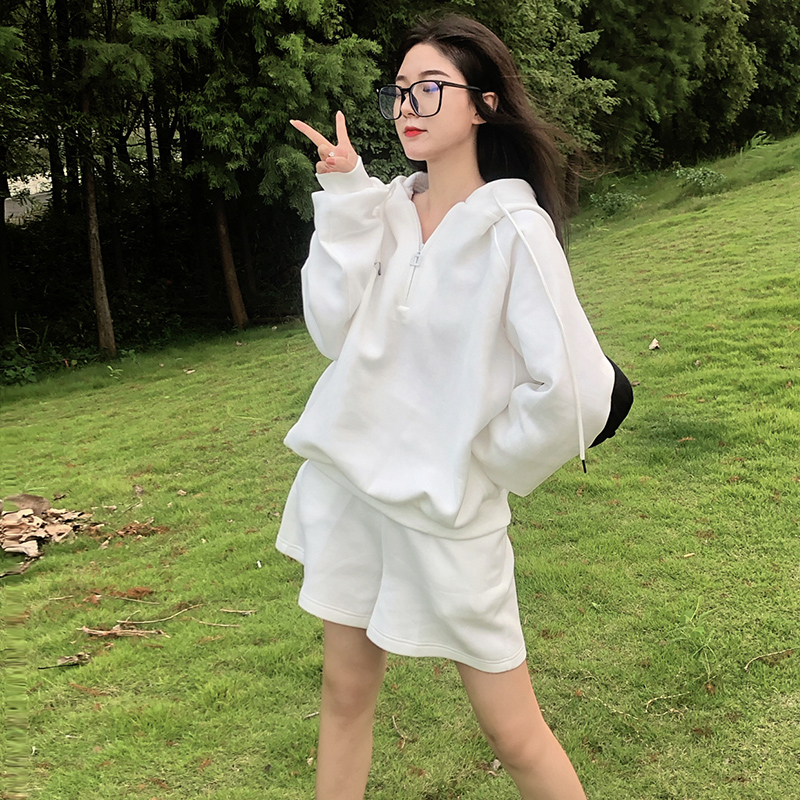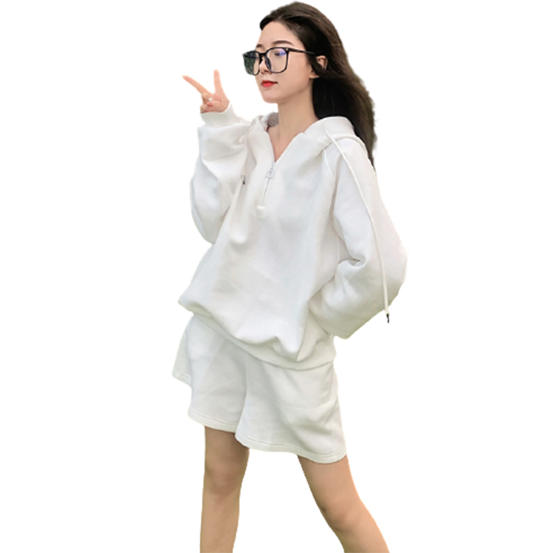 2022 Early Autumn New Fashion Advanced Sensational Web Red Fried Street Sports Casual Thick Cotton T Shorts Two-piece Suit Women Summer