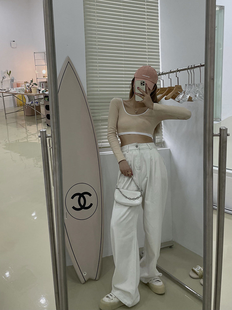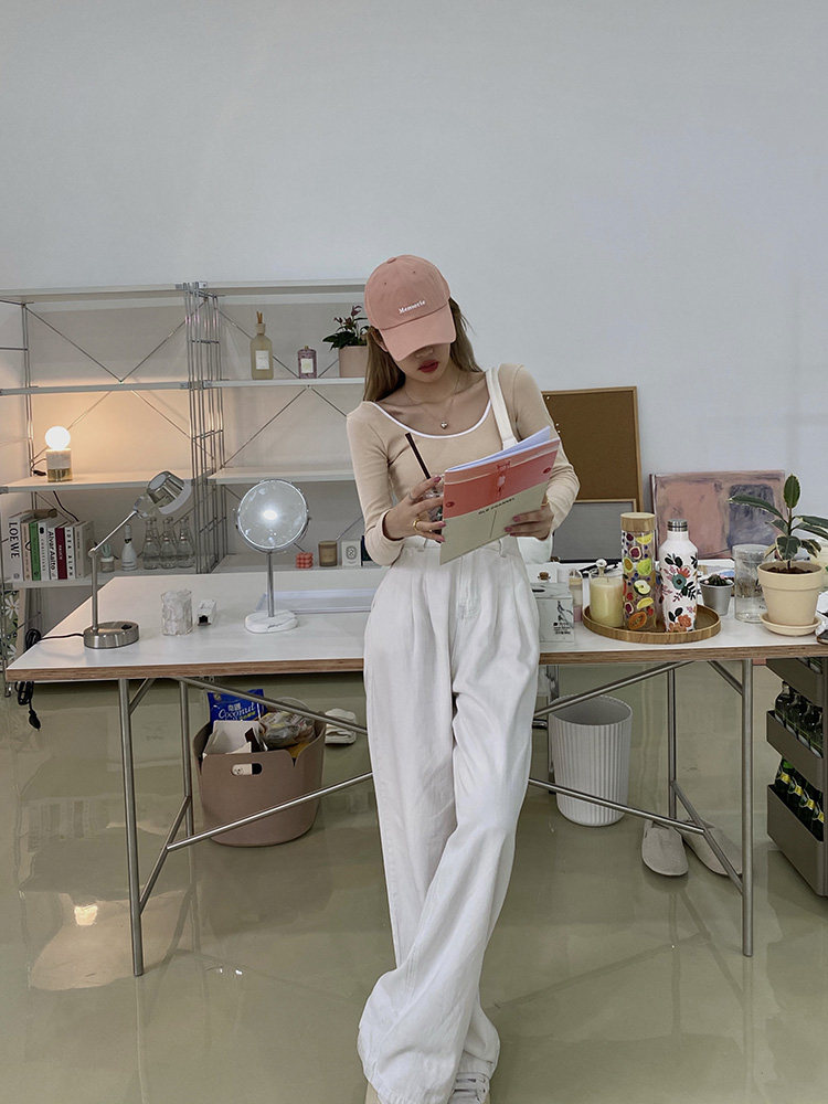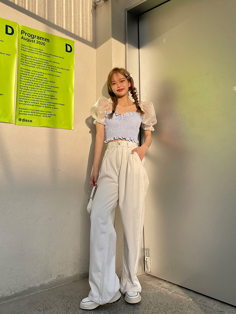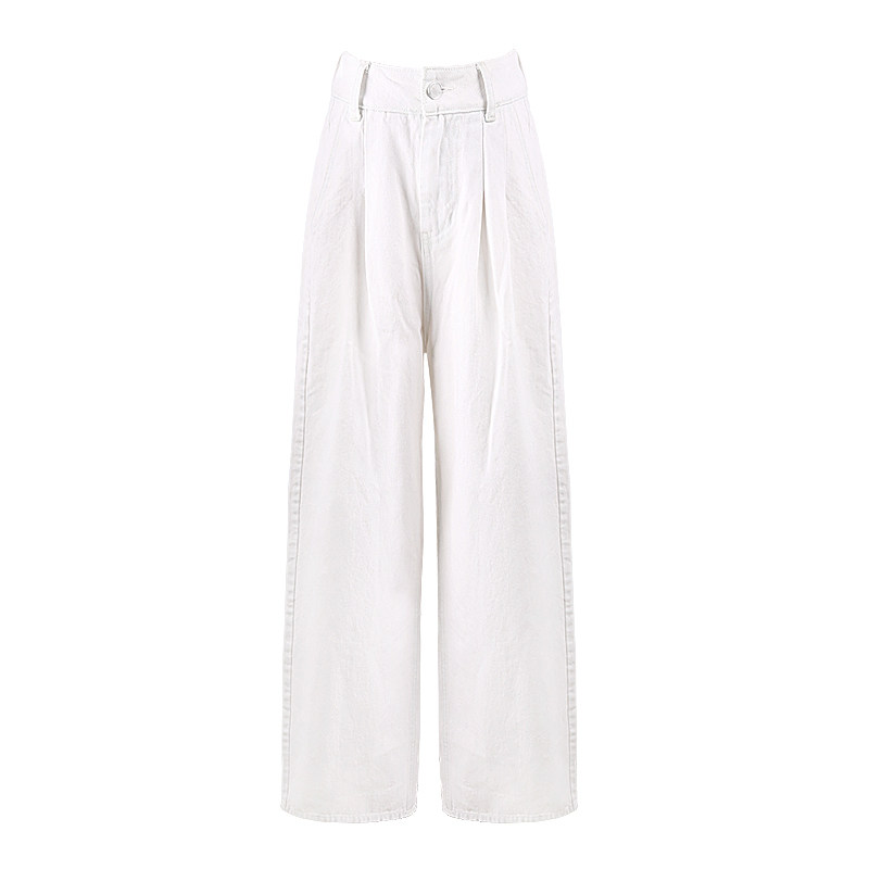 deesssicile 9 folds high waist large legs white tow ground loose straight lap, wide - legged jeans jeans girl