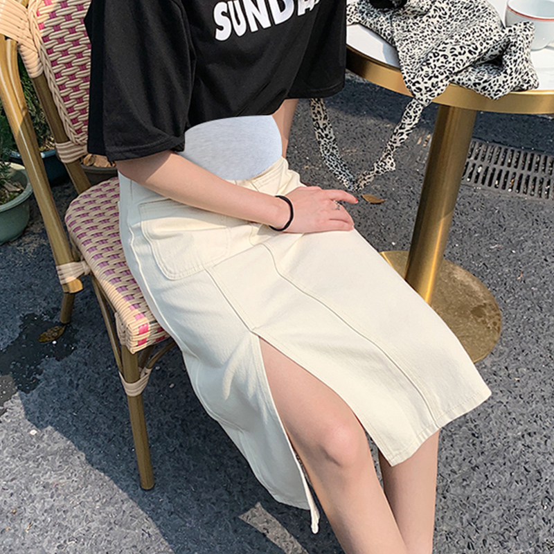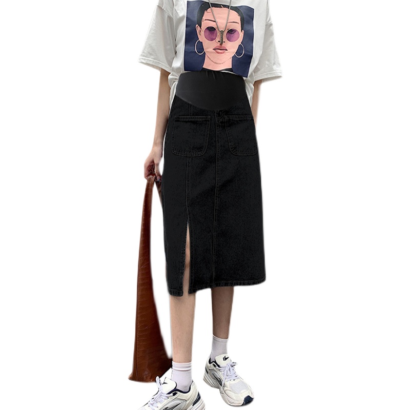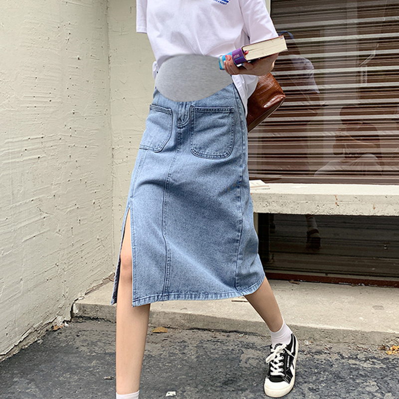 Pregnant women denim skirt spring and autumn outerwear fashion slit skirt mid-length autumn belly support skirt net red pregnant woman skirt