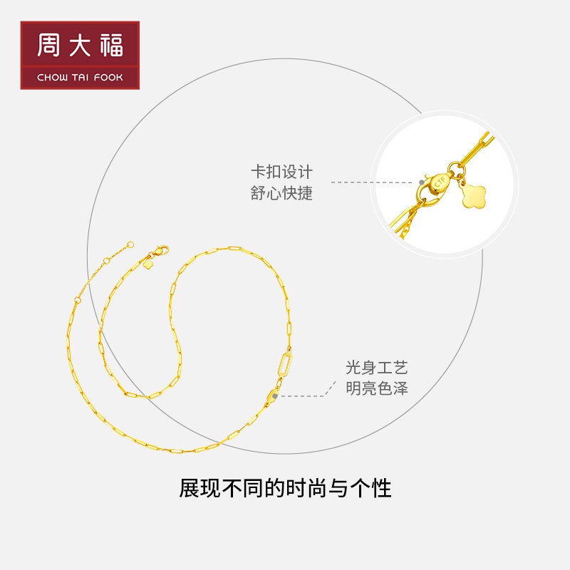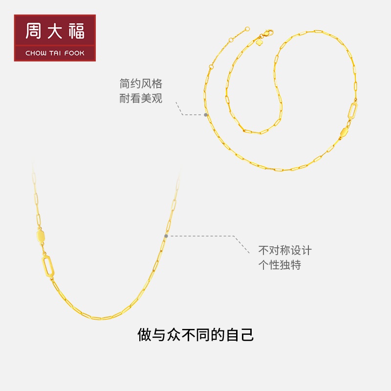 Chow Tai Fook Geometric Asymmetric Personality Pure Gold Gold Necklace Priced F224780