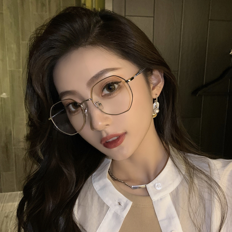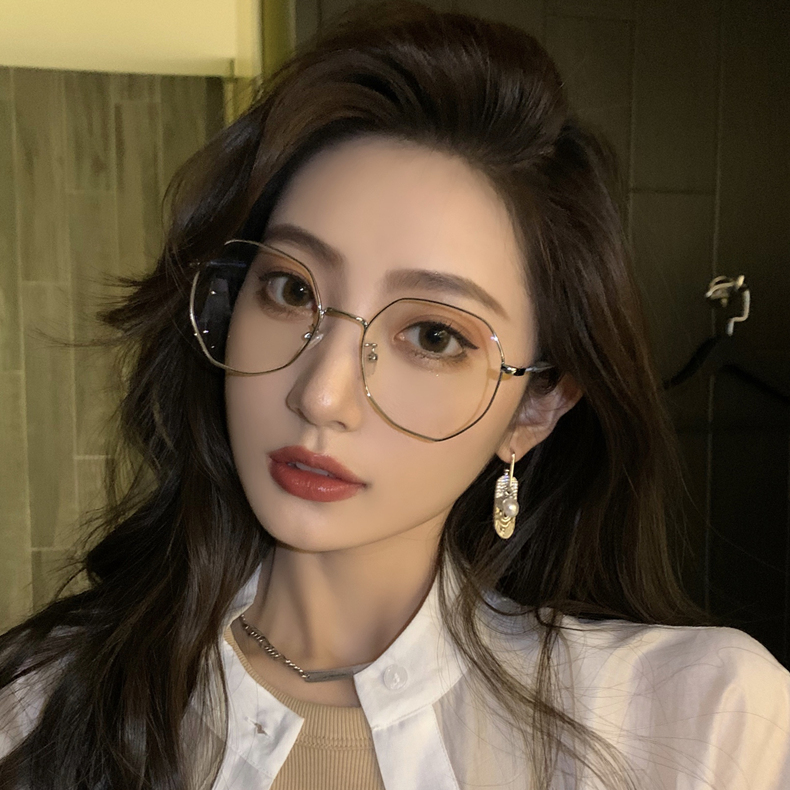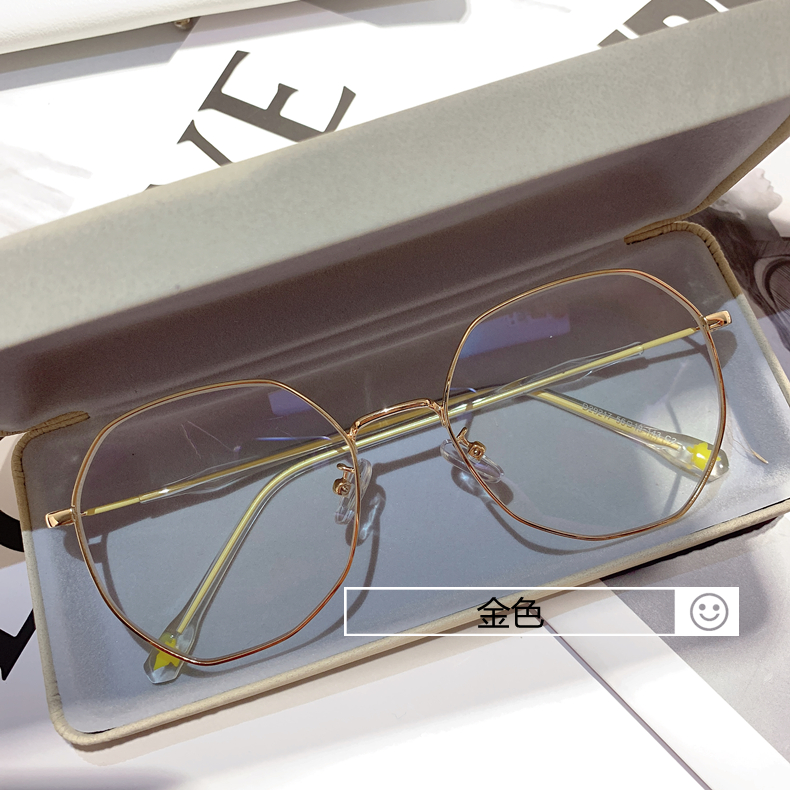 New large frame gold wire polygon Japanese glasses frame women's tide was thin flat mirror men's anti-blue light myopia prescription