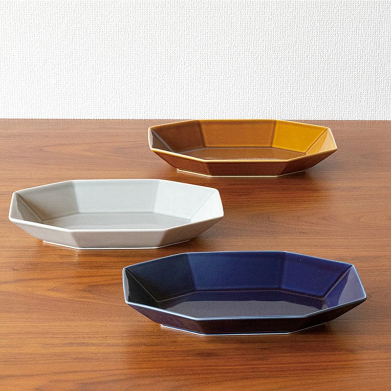 Japanese original octagonal long plate breakfast salad plate fruit and vegetable pasta plate deep soup plate household plate