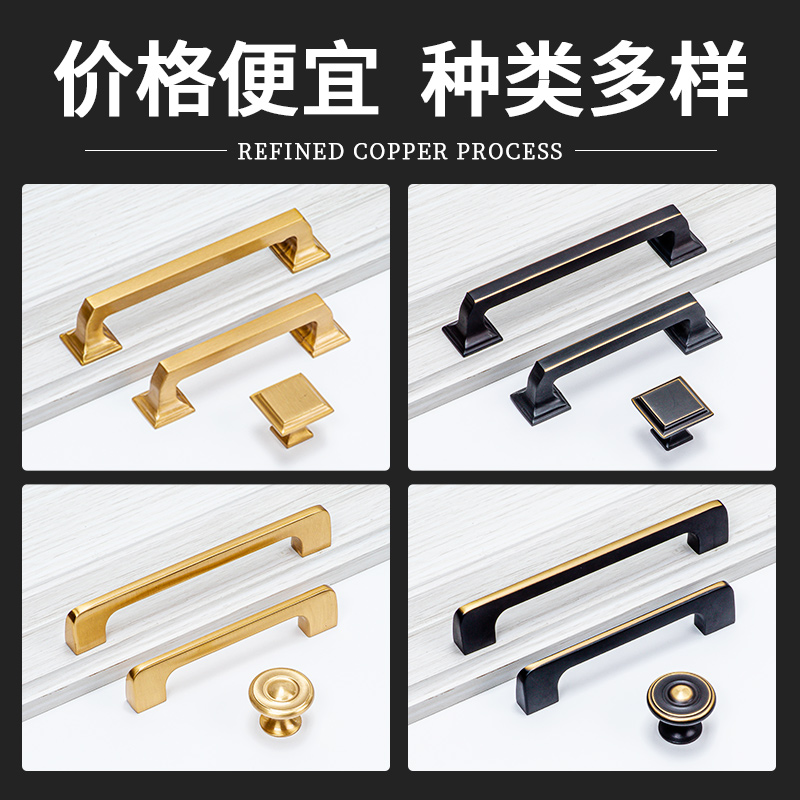 Pure copper handle cabinet door new Chinese furniture copper handle lengthened golden all copper overall cabinet wardrobe pure copper handle brass