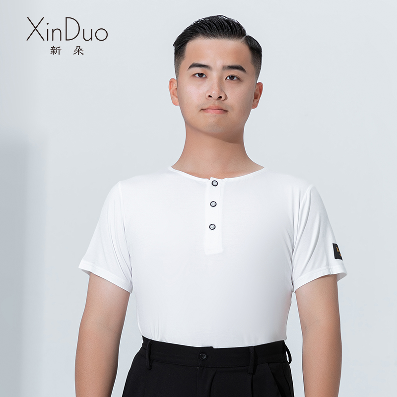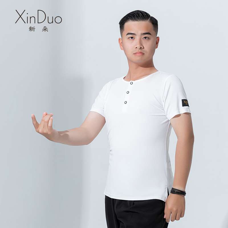 Morden Dance Blouse New Short Sleeves Summer National Mark Dance Men's Latin Dance Suit Square Dance White Performance Rehearse