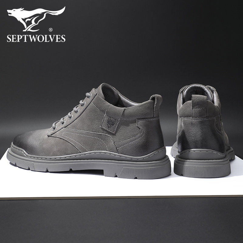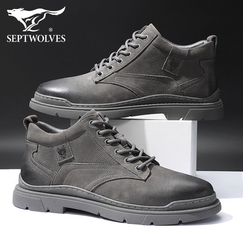 Septwolves Martin boots men's 2022 new winter high-top men's toe layer cowhide frosted tooling boots Martin shoes