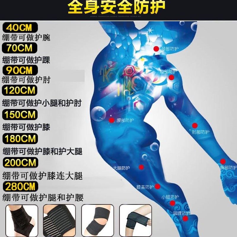 40CM (wrist guard), a 70CM (ankle guard), a 90CM (elbow guard), a 120CM (calf guard), a 150CM (knee guard), a 180CM (ankle guard)