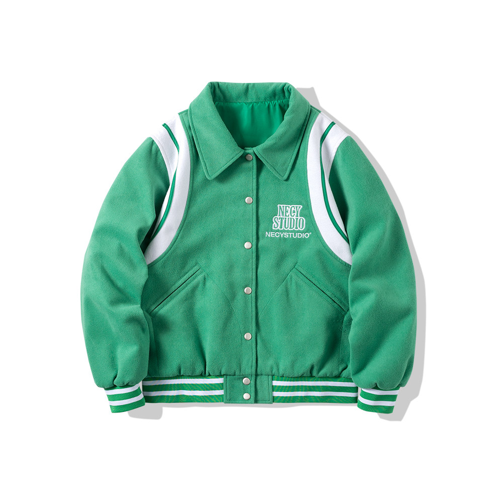 NECY campus style woolen green embroidered baseball jacket female couple trend hip-hop street loose jacket autumn and winter