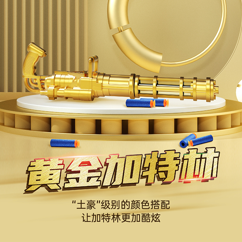 Gold Gatling Air Pressure Power Gun Soft Bomb Toy Gun Children's Toy Soft Bomb Gun Simulation Lengthened Shooting