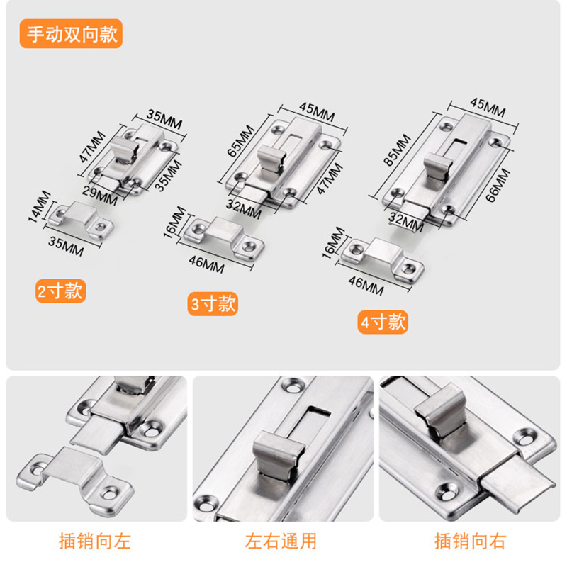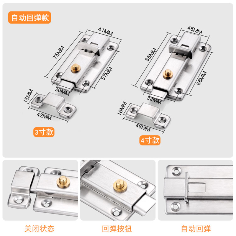 Stainless steel surface-mounted latch door latch door bolt thickened powder room wooden door latch door latch door latch anti-theft door latch