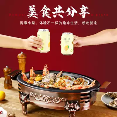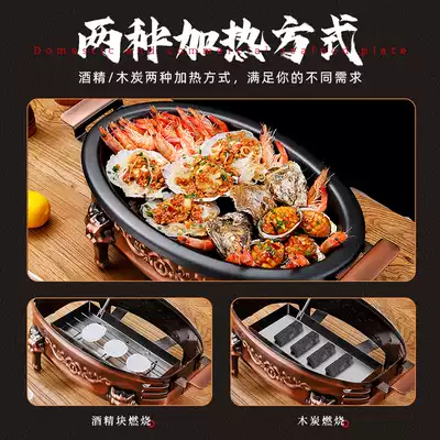 Seafood big coffee plate Oval merchant household non-stick fish grill commercial lobster tray charcoal stove carbon grilled fish special stove