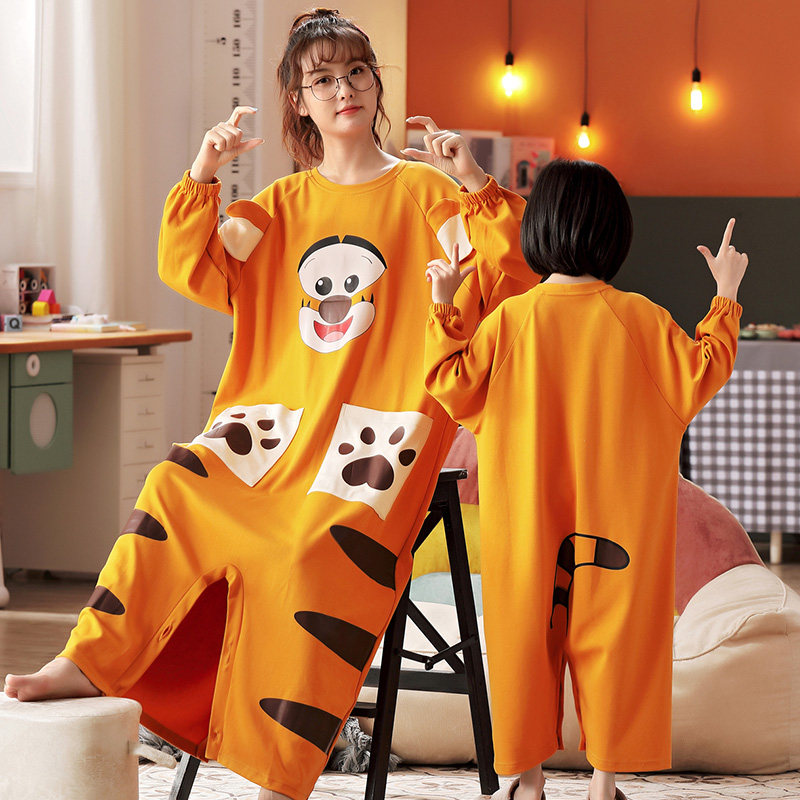 Children's sleepwear spring autumn season pure cotton long sleeves parent-child sleeping dress with big child anti-kick home clothes