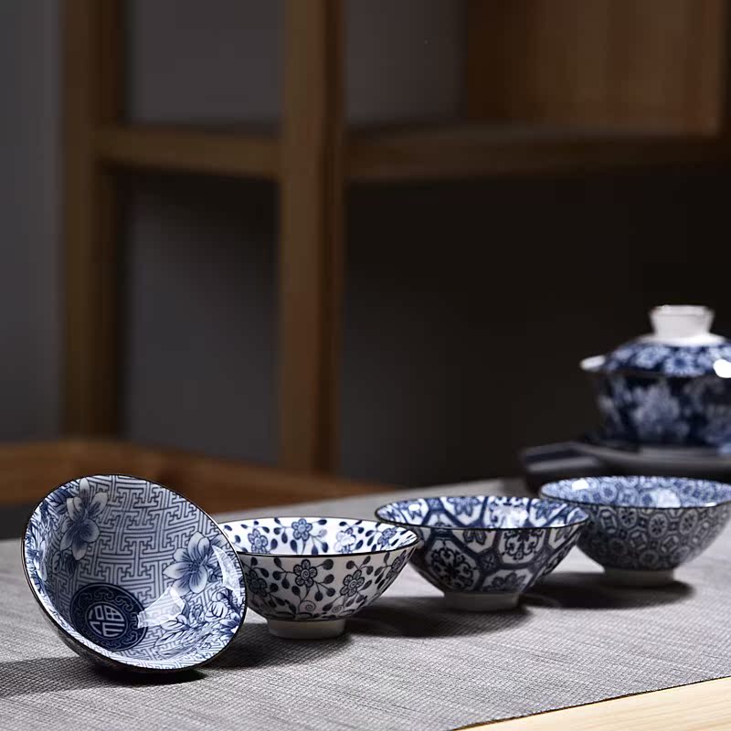 Blue and white bamboo hat cup-pisces knot blue and white bamboo hat cup-spinning plum blossom blue and white bamboo hat cup-spring and autumn ancient Chinese blue and white bamboo hat cup-the Great Wall blue and white bamboo hat cup-Songyin game blue and white bamboo hat cup-Xinhua Road Fangqing