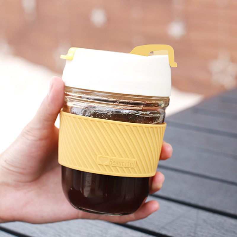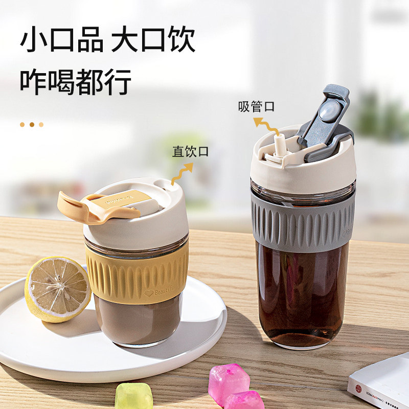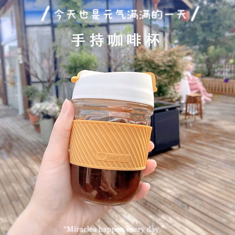 Portable water cup milk tea coffee cup heat resistant glass straw cup ins office with lid accompanying cup mesh red mug