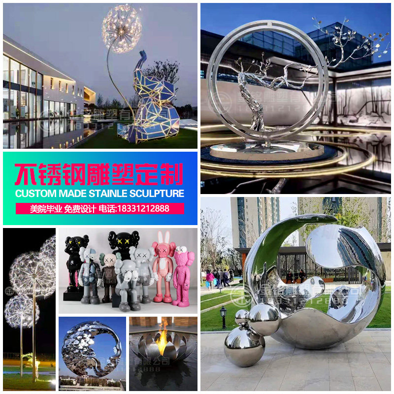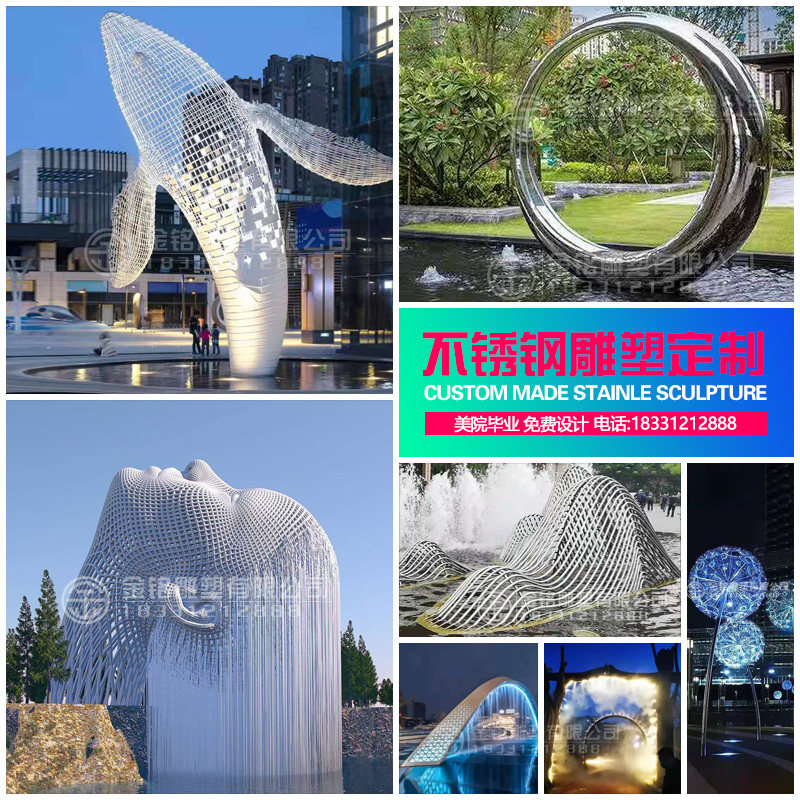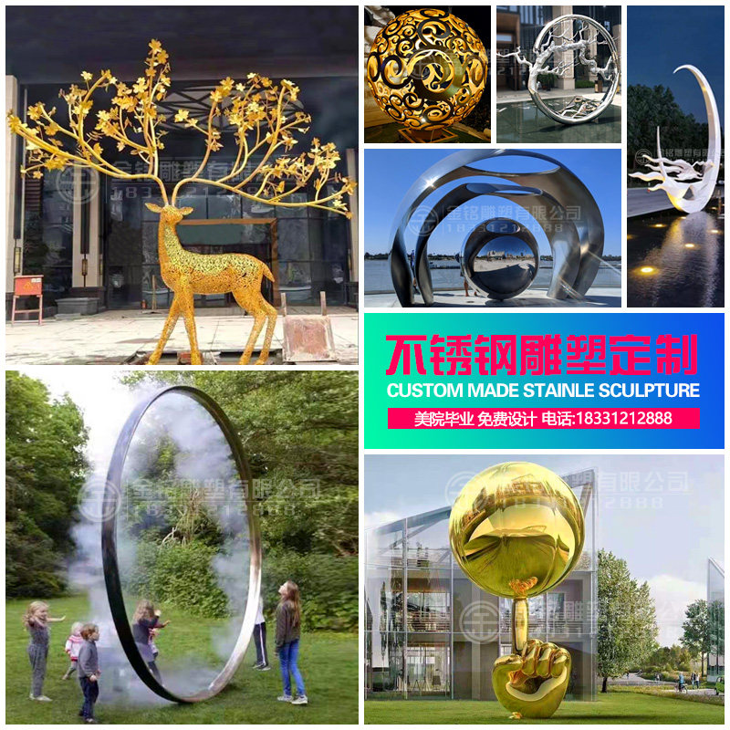Large stainless steel sculpture waves Rubik's Cube whale hollow ball globe deer ring moon rockery landscape customization