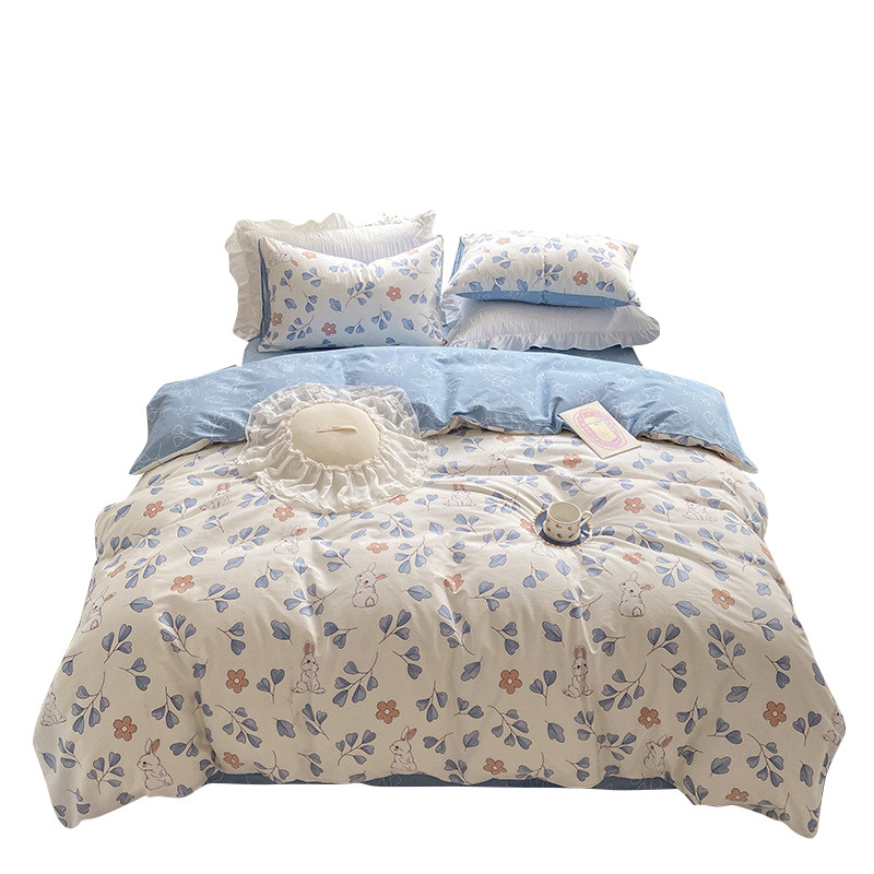 Small fresh ins wind cotton four-piece set 100 cotton dormitory bed sheet quilt cover bedding three-piece set spring and summer
