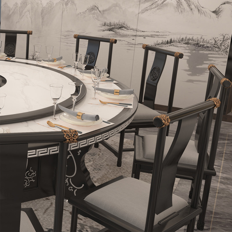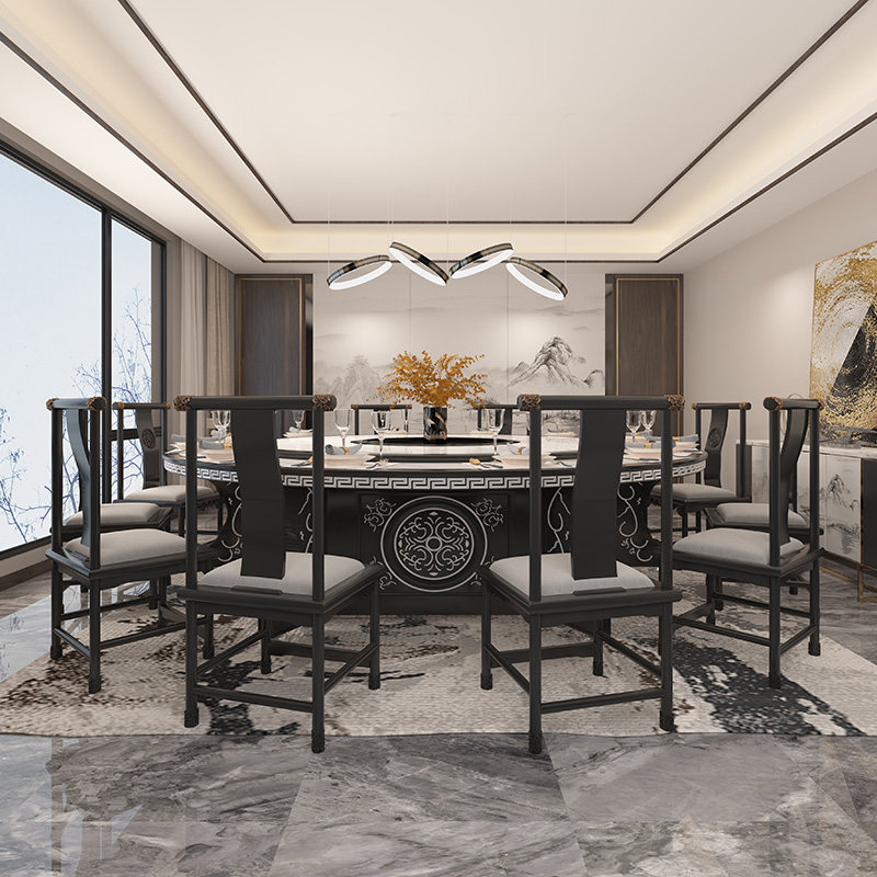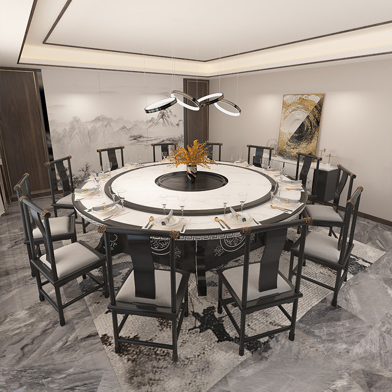 Hotel Dining Table Big Round Table New Chinese Manual Electric Round Table Dining Room Hotel Bag Room Table And Chairs Combination Custom