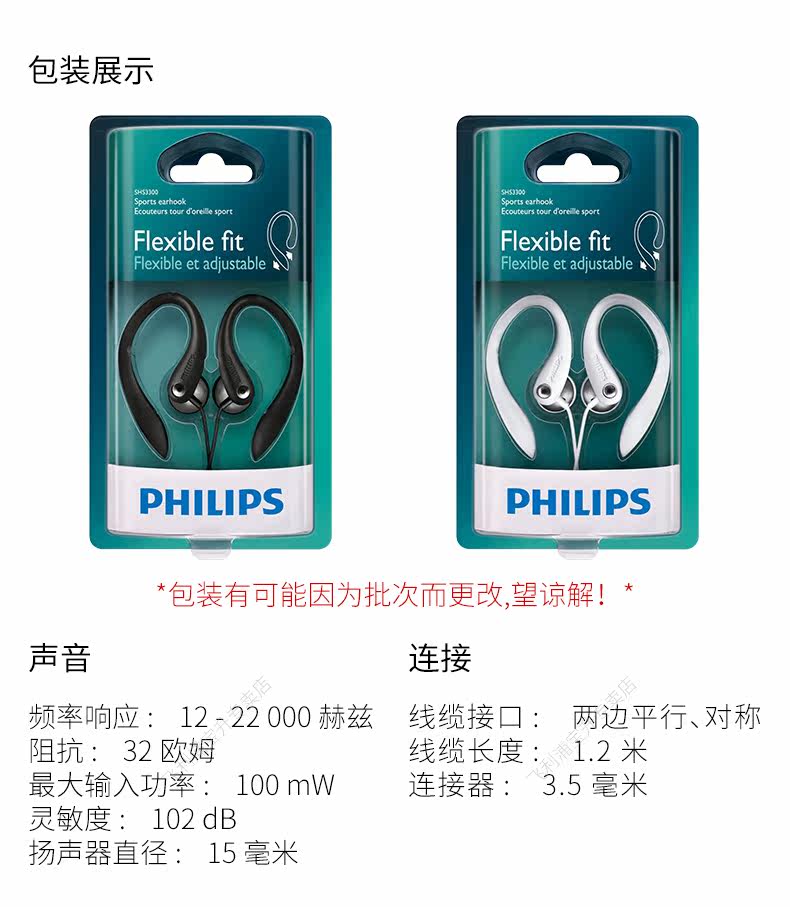 Philips Philips SHS3300 Wired Over-Ear Earbuds Sports Running Headphones Sweatproof Heavy Bass