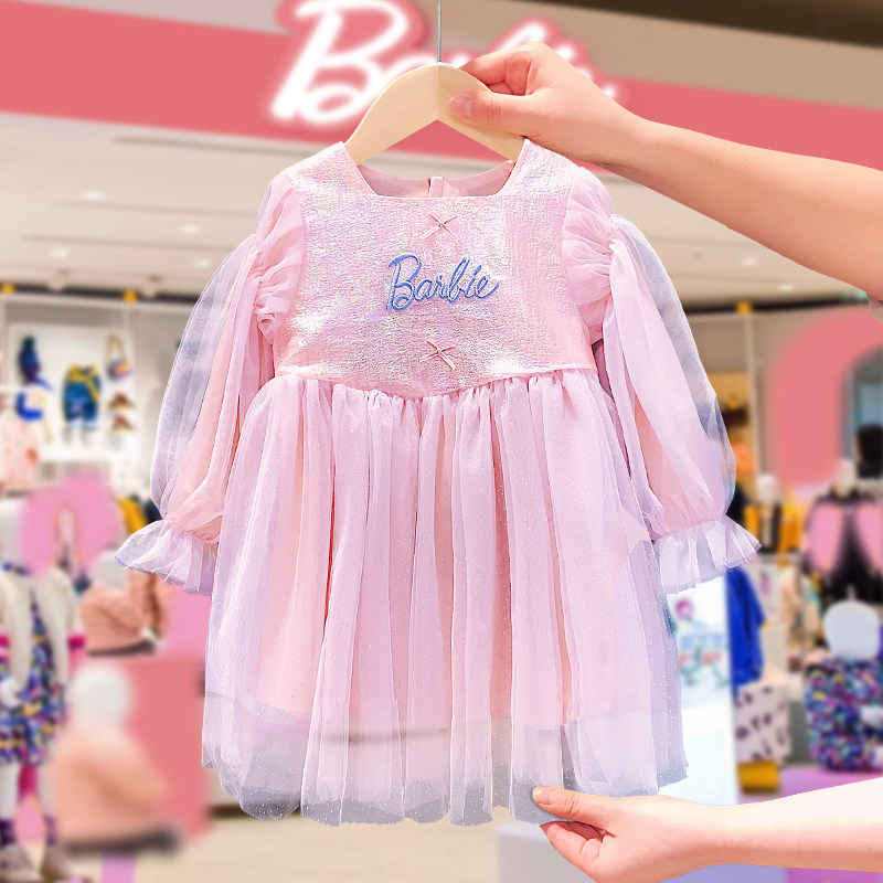 Barbie BARBIE Children's foreign princess dress 2022 Autumn Dress Girl Foreign Dress Spring Autumn Girl Web Yarn Dresses
