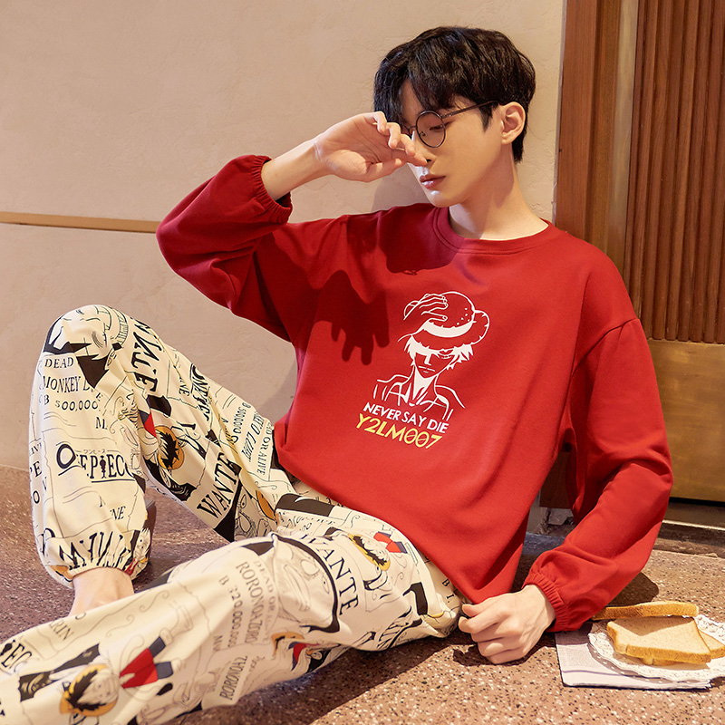 Pajamas men's spring and autumn cotton long-sleeved youth cartoon cotton thin section autumn outer wear men's homewear suit