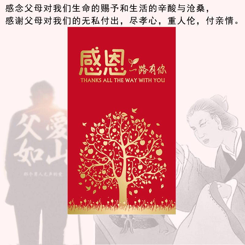Mother (silk cloth) Father (silk cloth) Grateful to have you all the way (silk cloth) Good luck (cloth) Prosperous future (cloth) Parents set (one each)