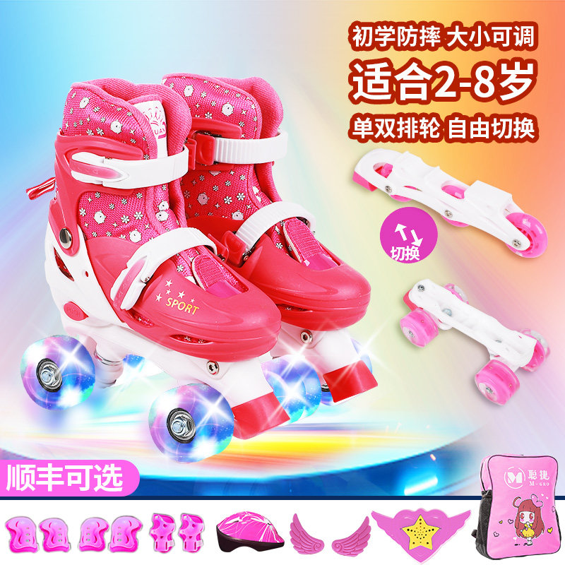 Pink double row full flash shoes safety helmet protective gear package blue double row full flash shoes safety helmet protective gear bag pink single and double row interchangeable full flash suit blue single and double row interchangeable full flash suit pink double row full flash