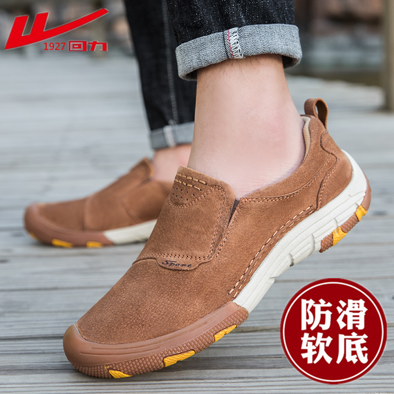 New Back Force Men's Shoes Fall Genuine Leather Outdoor Climbing Leather Shoes Non-slip Breathable Middle-aged One Foot Pedal Casual Dad Shoes