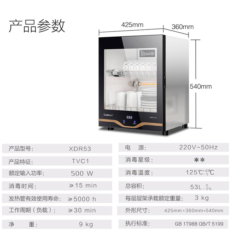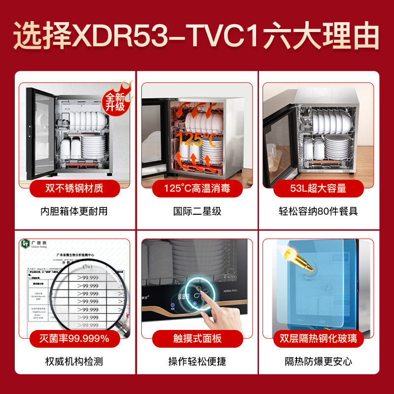 Herbalife XDR53-TVC1 disinfection counter type household small disinfection cupboard vertical high temperature tableware mini desktop