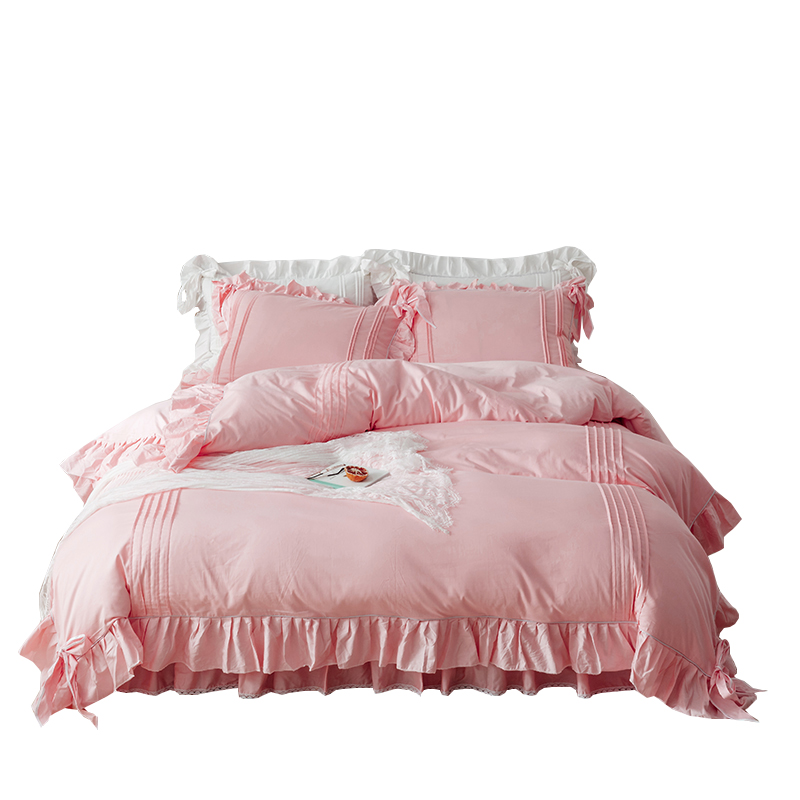 100% cotton beddress bedcover four pieces of pure color embroidery European style of double autumn winter bedding