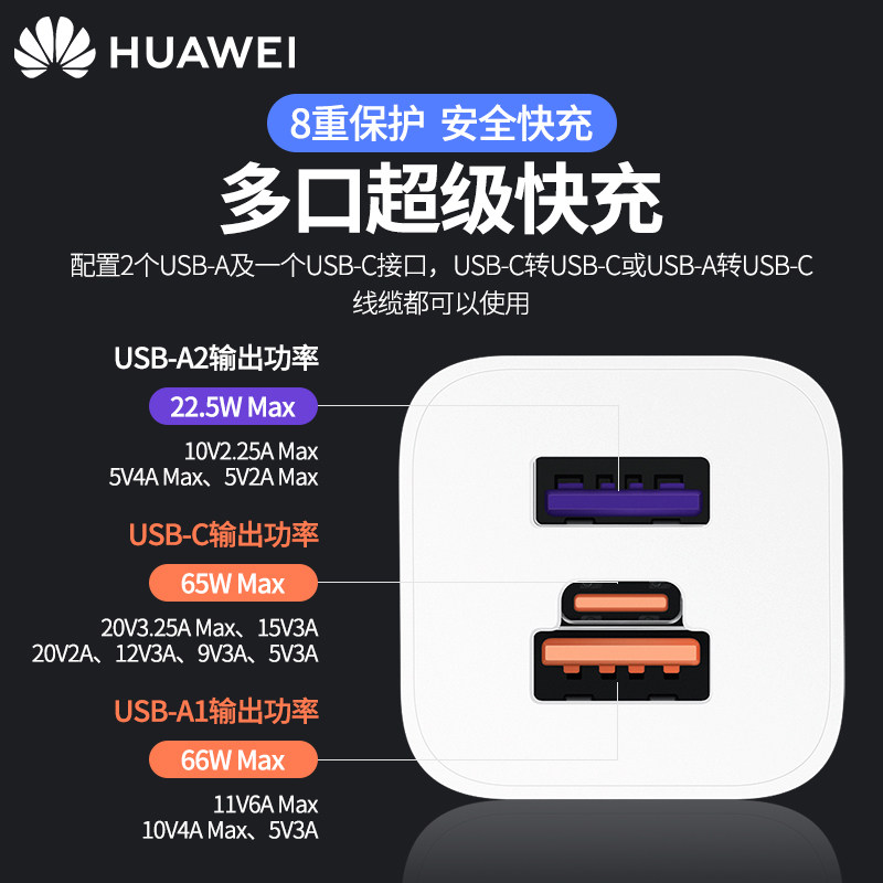 Huawei 66w super fast charging GaN multiple-port charger Huawei 66w super fast charging GaN multiple-port charger 6A single-head type-c line Huawei 66w super fast charging GaN