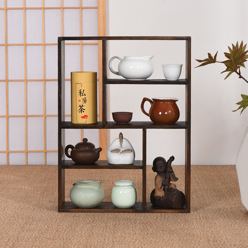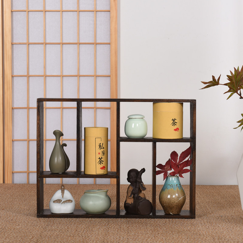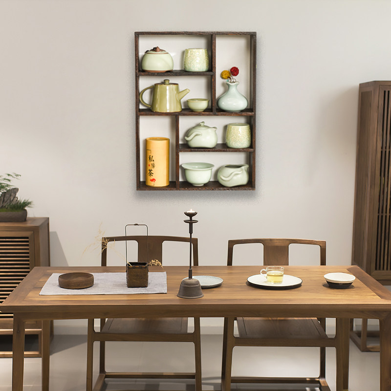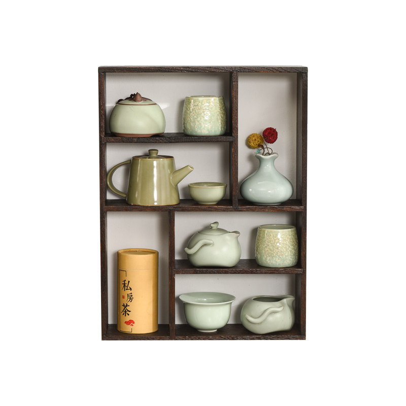 Solid wood wall shelve wall Wall-mounted Wall Tea Daupai Tea Tea Tea Cup Tea Cup Ware Storage shelf Multi-layer checkered shelf