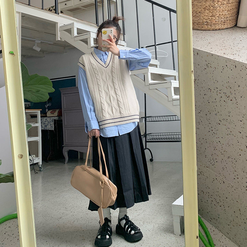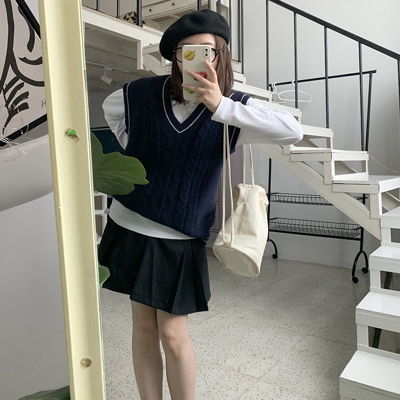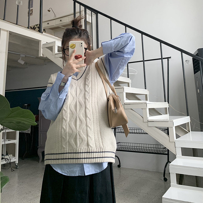 Generally cute college style hemp flower knitted vest women's 2021 new spring and autumn loose vest sweater vest